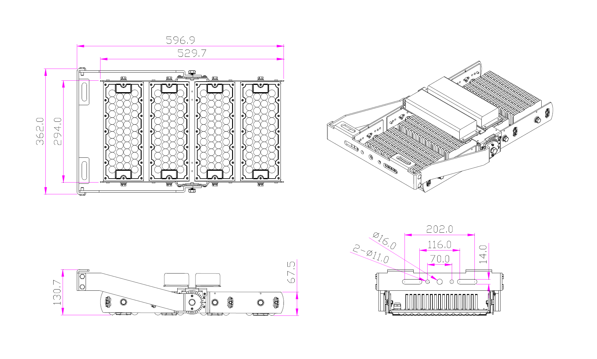 适用于高杆灯、港口、体育场馆等大面积投光照明。